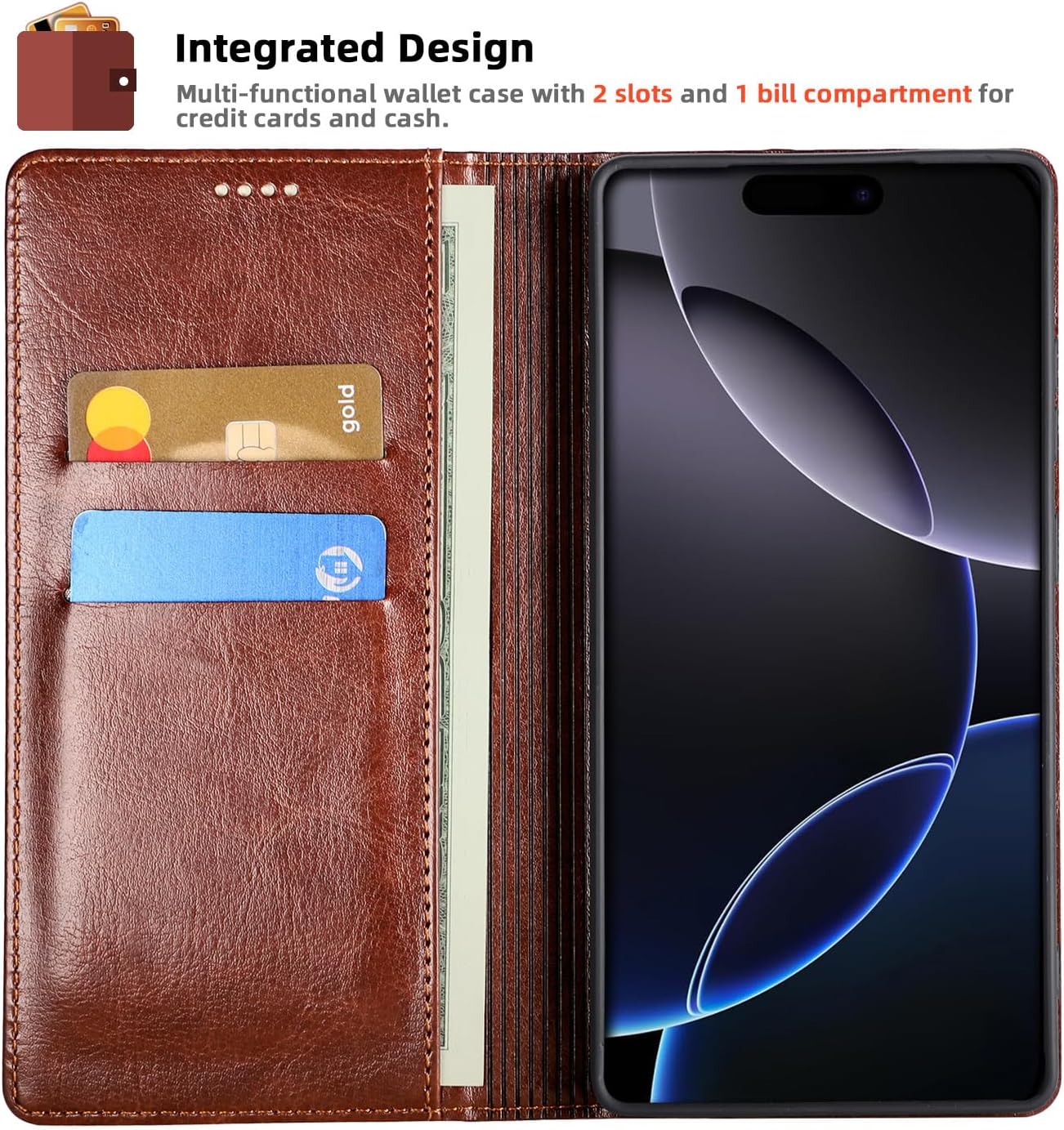 The phone wallet has no exposed side buckles, resulting in a cleaner, more elegant look and a smooth, comfortable feel. The built-in magnets open and close effortlessly, ensuring a secure closure without the bulk and wear of traditional side buckles.