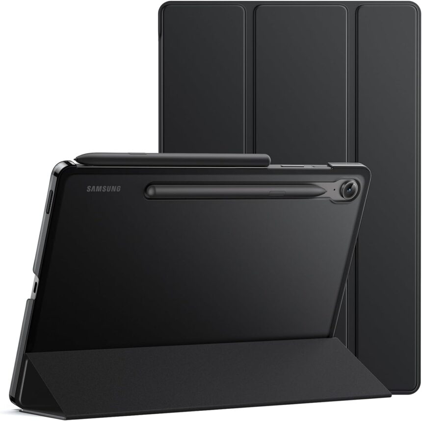 JETech Case for Samsung Galaxy Tab S10 Lite / S10 FE / S9 FE 10.9-Inch, Slim Translucent Back Tri-Fold Stand Protective Tablet Cover, Support S Pen Charging, Auto Wake/Sleep (Black)
