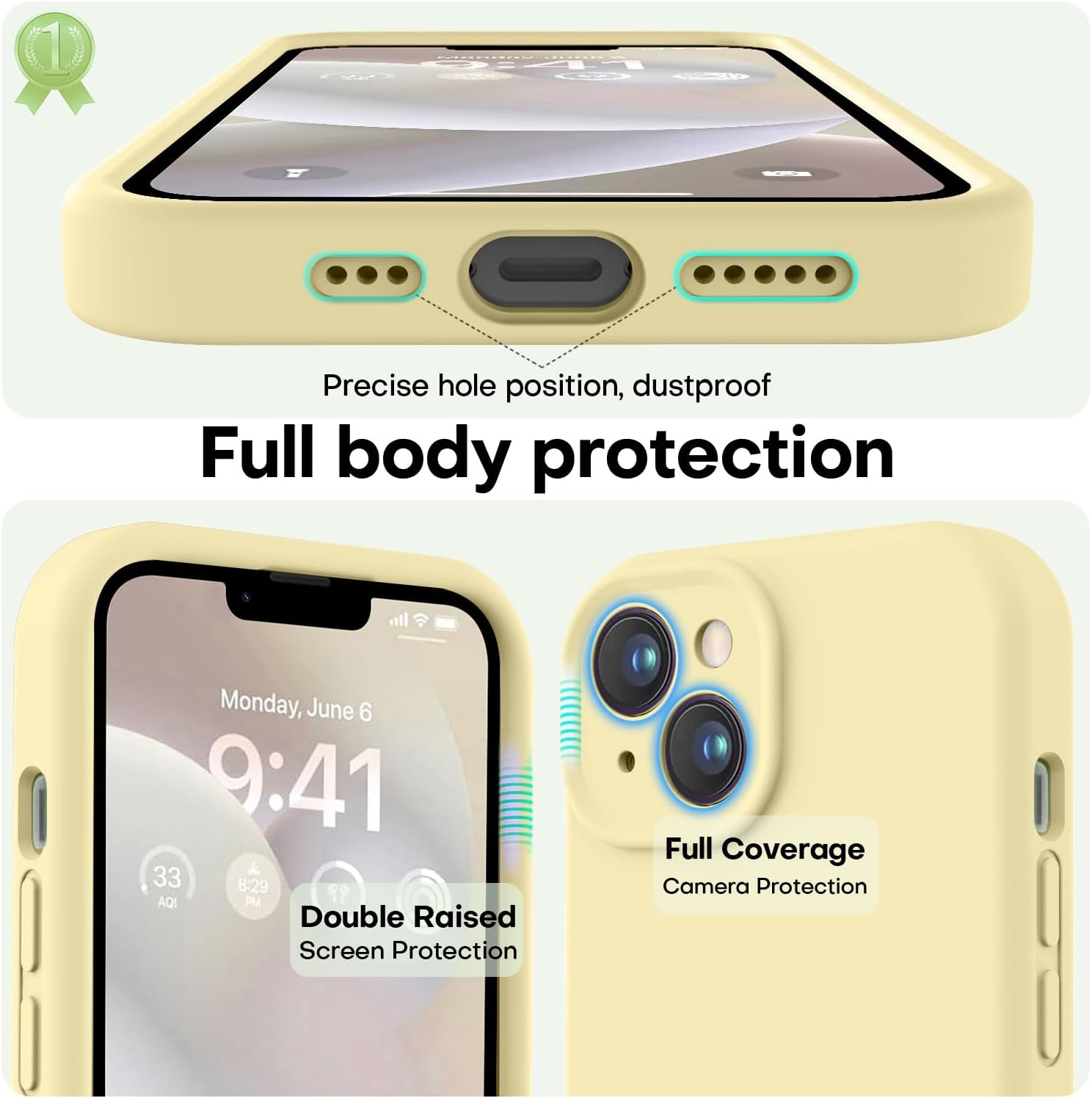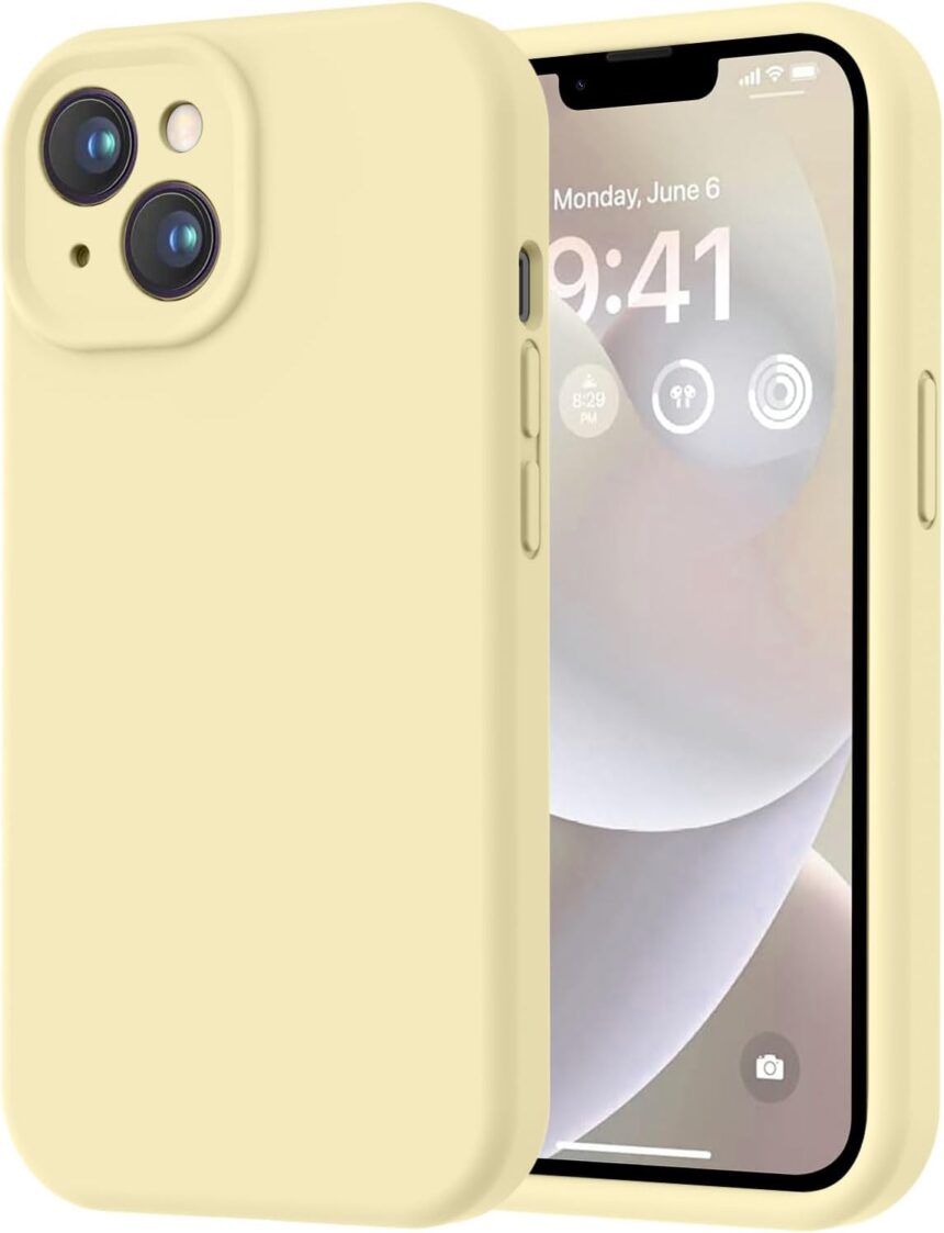LOVE 3000 Designed for iPhone 14 Case, Premium Silicone with [Soft Anti-Scratch Microfiber Lining] Shockproof Protective Phone Case for Men Women Girls 6.1″, Creamy Yellow