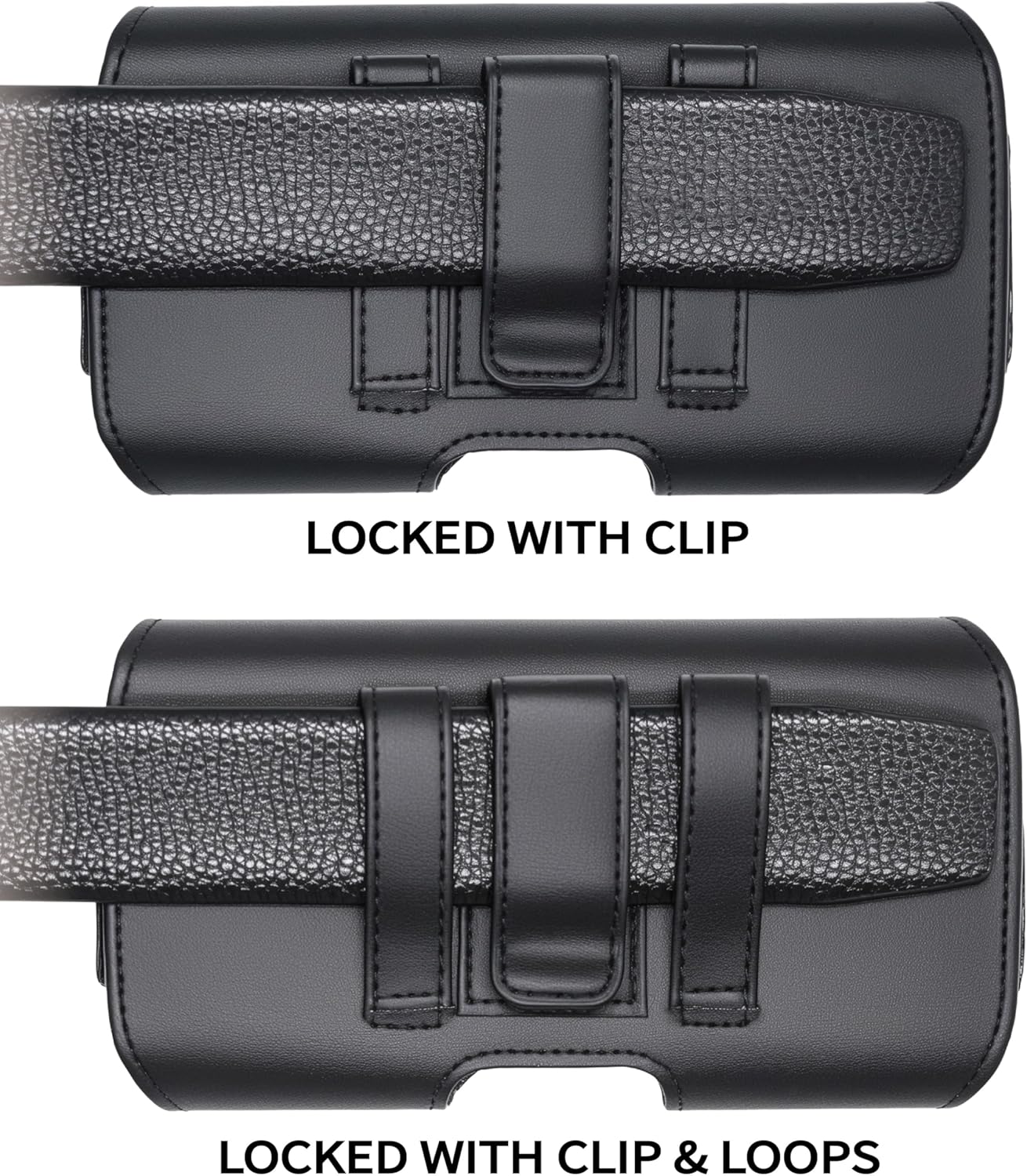 Durable metal belt clip that is impact resistant while providing durability for extended usage. With 2 additional belt loops for extra security hold & long lasting everyday usage.