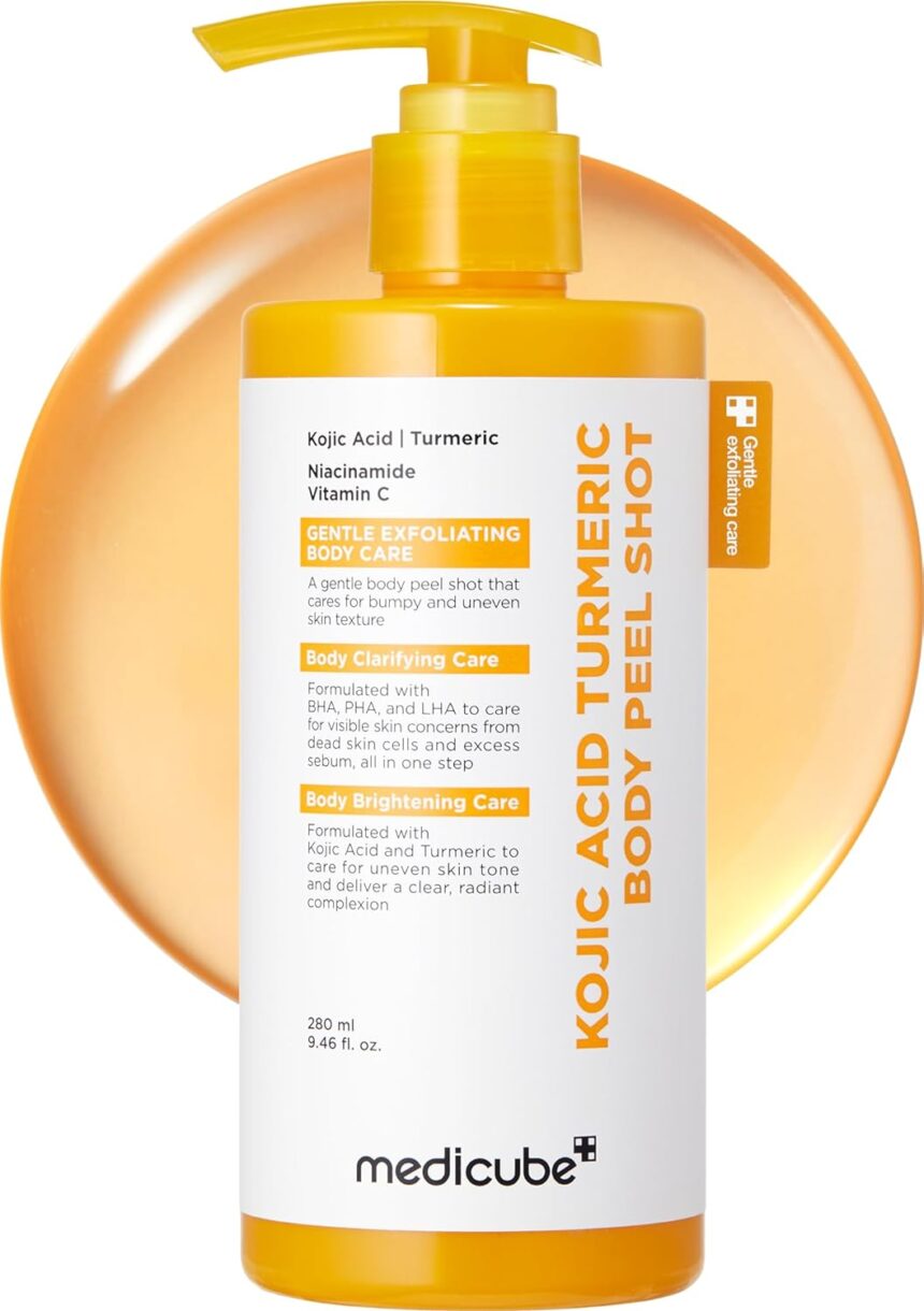 medicube Body Peel Shot with Kojic Acid and Turmeric | Gentle Body Brightening & Exfoliating Serum with BHA, LHA & PHA for Dead Skin Cells, Uneven Looking Skin & Excess Sebum | 9.46 fl.oz