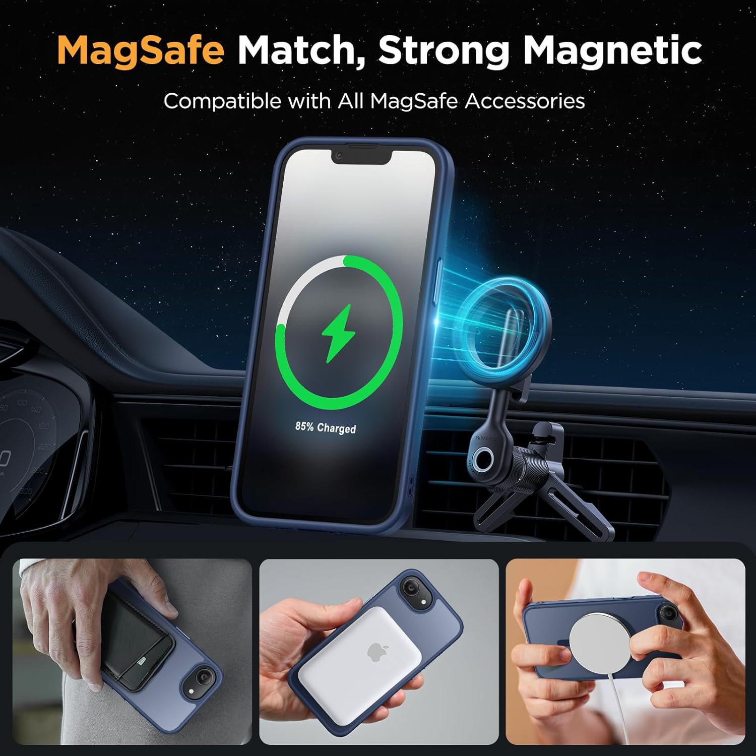 [Enhanced MagSafe Compatibility] Engineered exclusively for iPhone 16e case & iPhone 17e case: Built-in 38×N56+ Magnet System with an innovative Focus-Ring, delivering 60% stronger magnetic adhesion than other cases. Ensures perfect alignment for secure fast charging up to 25W with MagSafe or Qi wireless chargers and provides a stable hold on all MagSafe accessories.