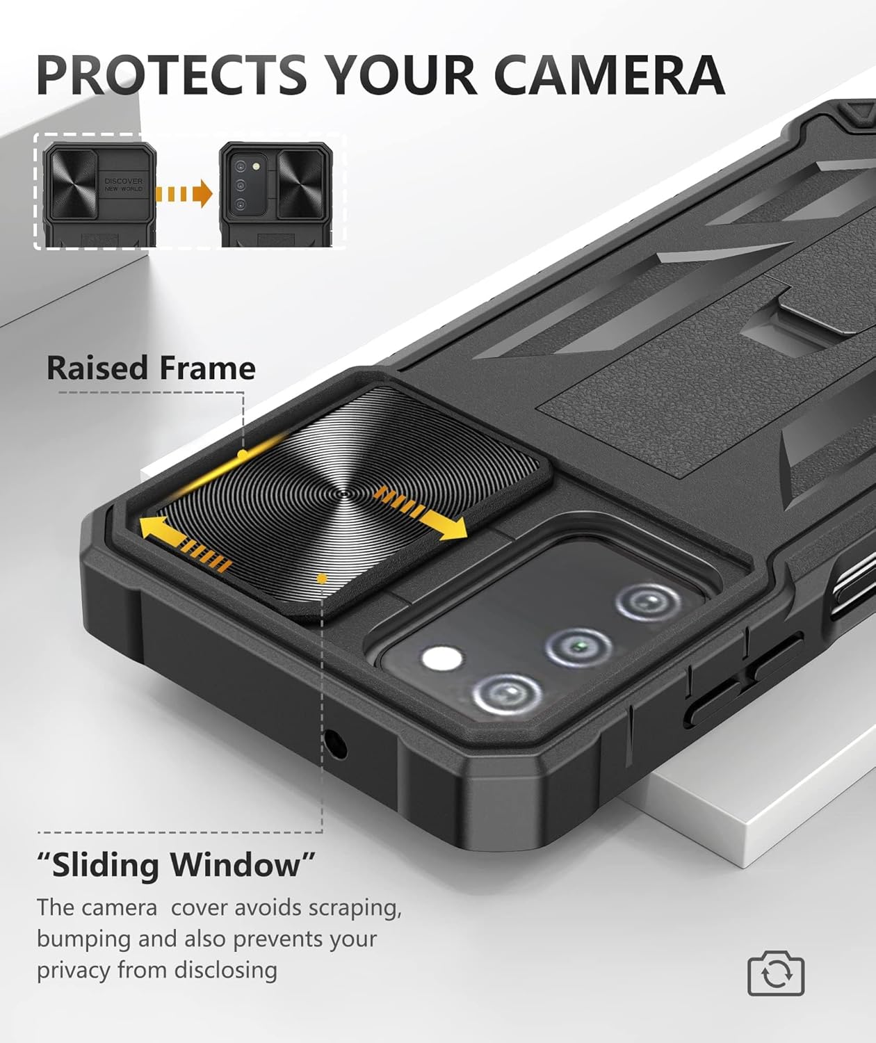 Sliding Window Design: Unique design of camera slide cover,higher than the rear camera lens, protects the camera lens against scratches,scrapes,impacts while helps protect your privacy from revealing