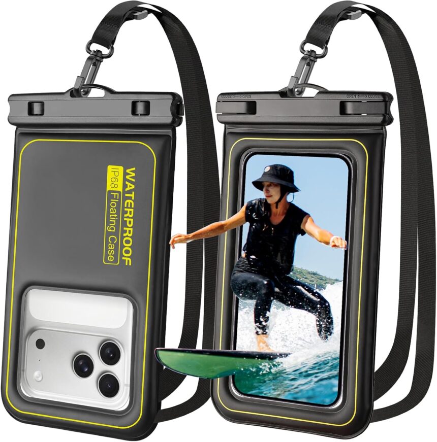 IP68-Certified Waterproof Protection: This 3.3-foot/1-meter IP68-certified floating waterproof phone case is specifically designed for outdoor activities, making it an ideal choice for swimming pools, beaches, kayaking, fishing, surfing, sailing, skiing, boating, snorkeling, rafting, and other water park activities. This waterproof bag ensures your phone functions normally and is 100% waterproof, making it an essential accessory for cruise trips, vacations, and travel