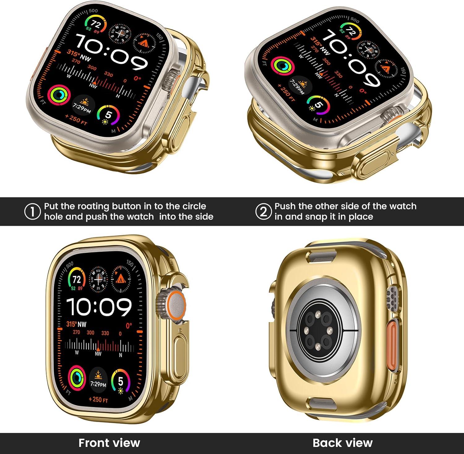 Lightweight & Slim: Ultra-slim and lightweight for comfortable wear; Flexible materials of the Apple Watch cover for easy installation and removal; Make sure you align the square part of the screen side, and the round part with the charging side.