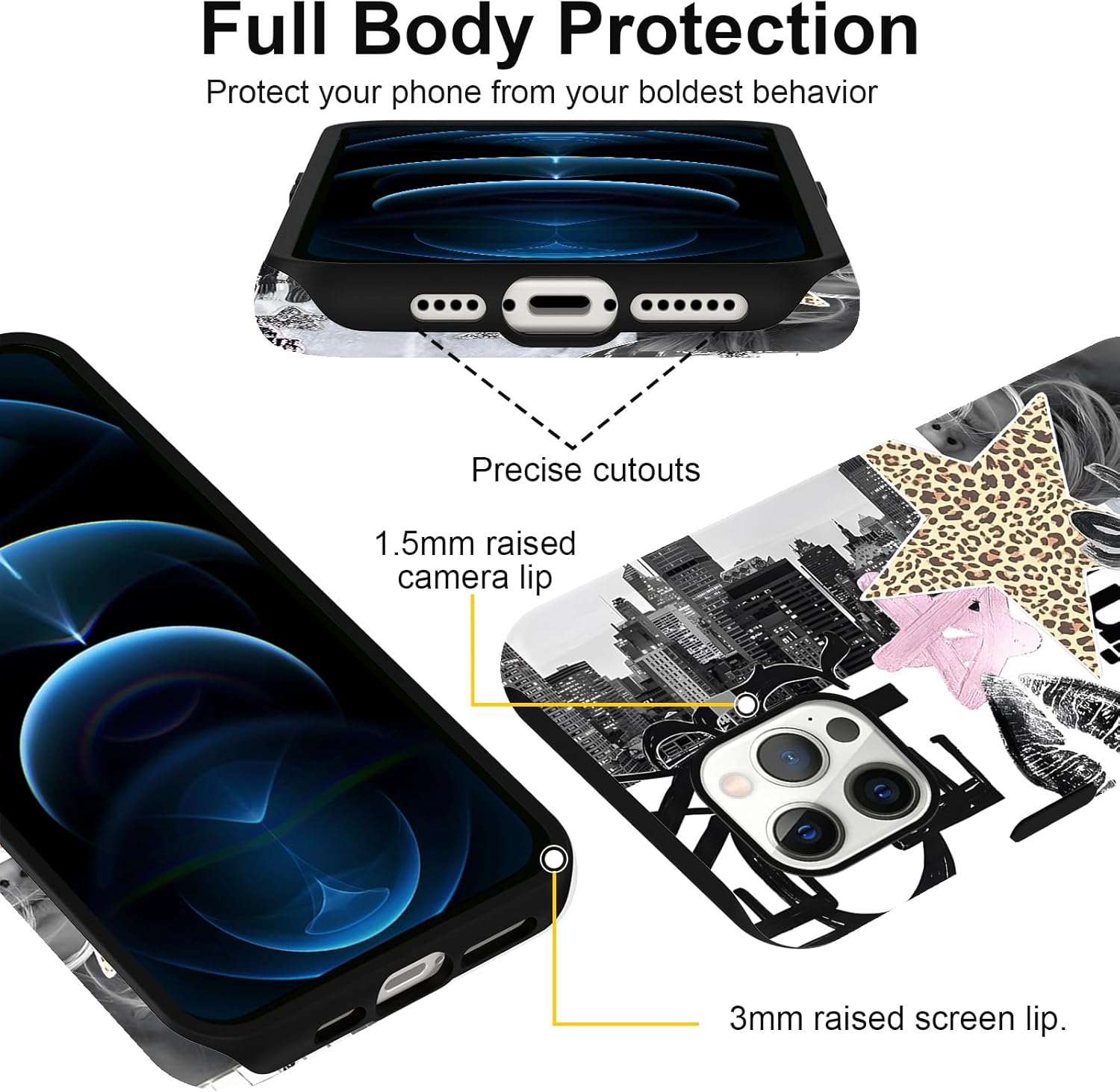【Full Body Protection】The iPhone case is slim and durable, resistant to impact, with TPU lining for shock absorption, And it features raised edges on the screen and camera, providing additional protection for your beloved phone from collisions and drops.