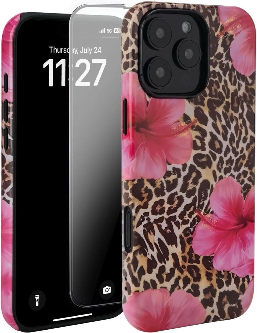 Cute Fashion Pattern Design: Cute fashion leopard pink hibiscus tropical floral pattern, specially designed for women and girls. Easy to match perfectly with any color of phone, Our fade-proof HD patterns use nano-coating tech to lock in colors that scream you