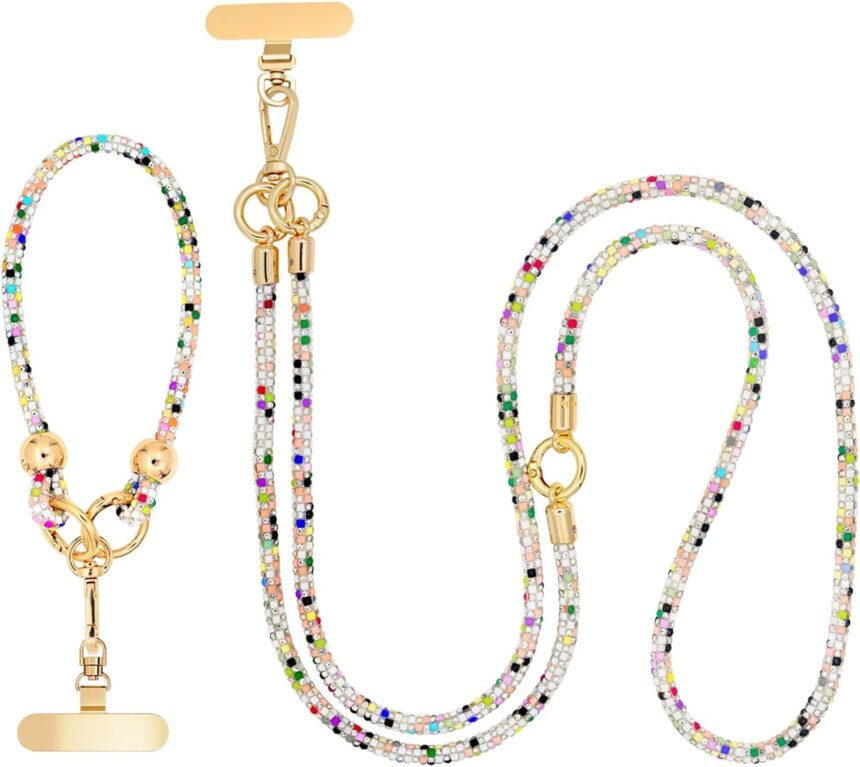 Crystal Phone Strap Crossbody and Wrist Lanyard, Anti Theft Layered & Wrist Strap Cell Phone Neck for Women