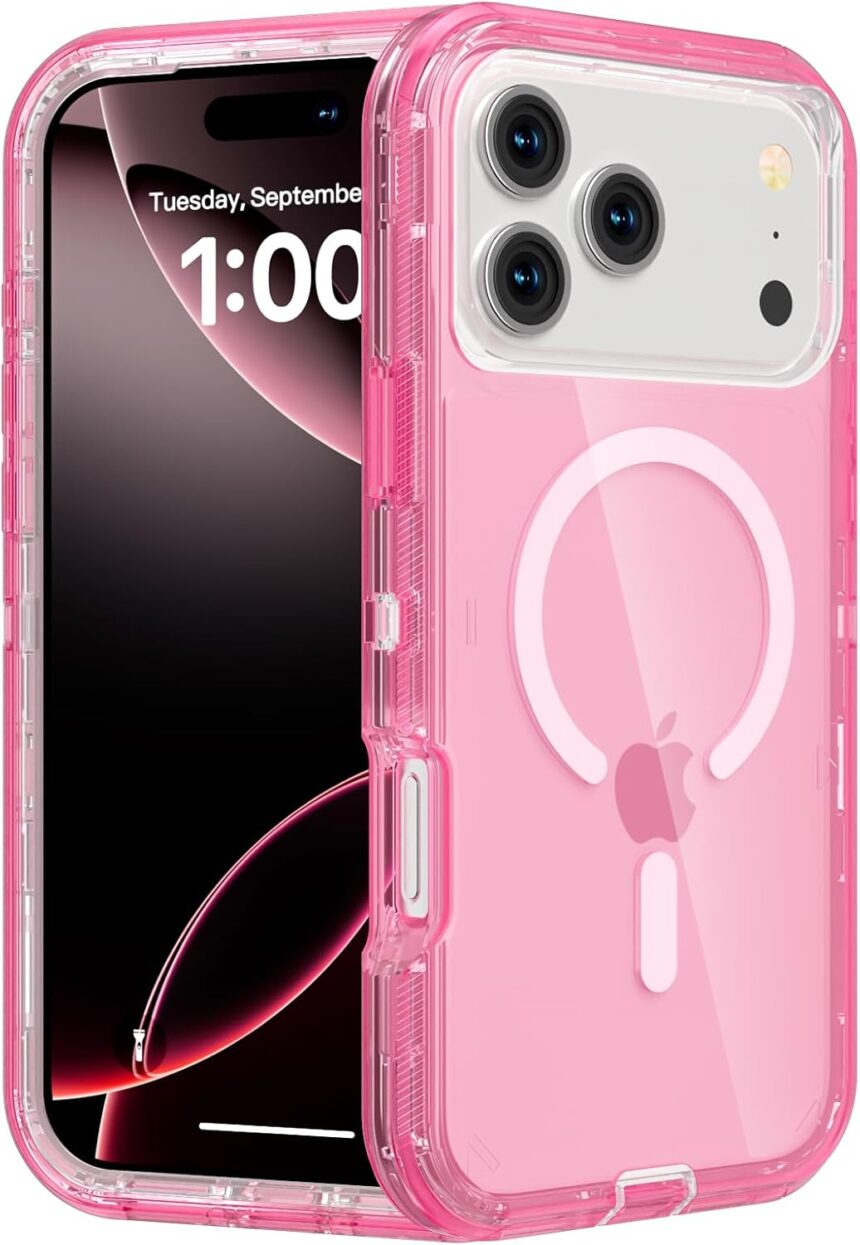 Follaroma for iPhone 17 Pro Max Case, Compatible with MagSafe, Dual Layer Transparent Magnetic Phone Case, Heavy Duty Anti-Drop Shockproof Protection Phone Cases for iPhone 17 Pro Max, 6.9 inch, Pink