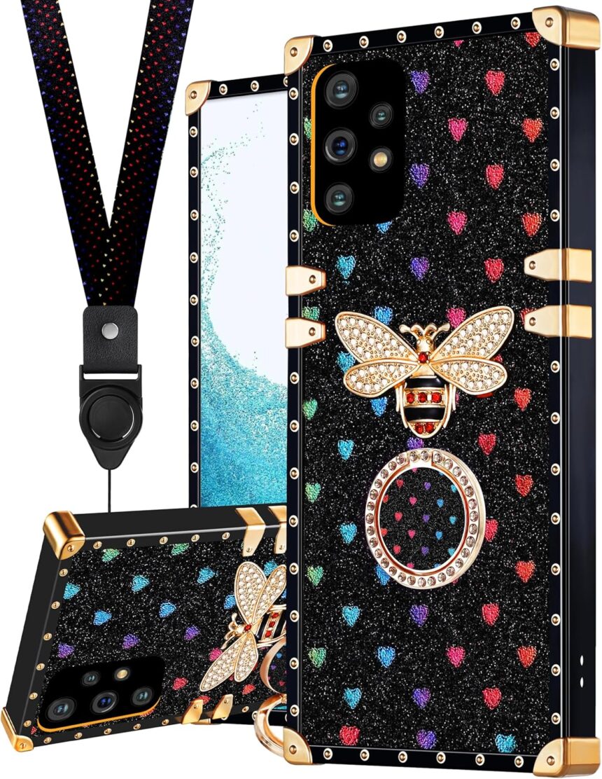 Protection Matters – We thicken the four corners of the cases for Samsung Galaxy A53 5G , and design them as classy metal decorative ones. The inner layer of the back case is made of soft TPU, and the height of the raised edges is doubled by the lovely golden rivets to keep your phone away from drop damage and scratching on flat surfaces.
