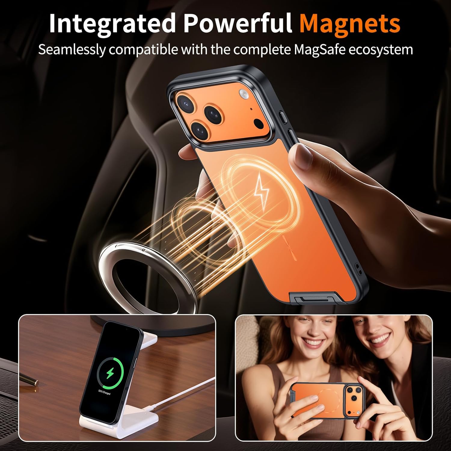 Seamless MagSafe Compatibility: Built-in integrated powerful magnets ensure compatibility with MagSafe ecosystem. Enjoy fast, secure wireless charging with MagSafe chargers, car mounts, and power banks without removing the case. The strong magnetic alignment guarantees stable connection and efficient charging every time.