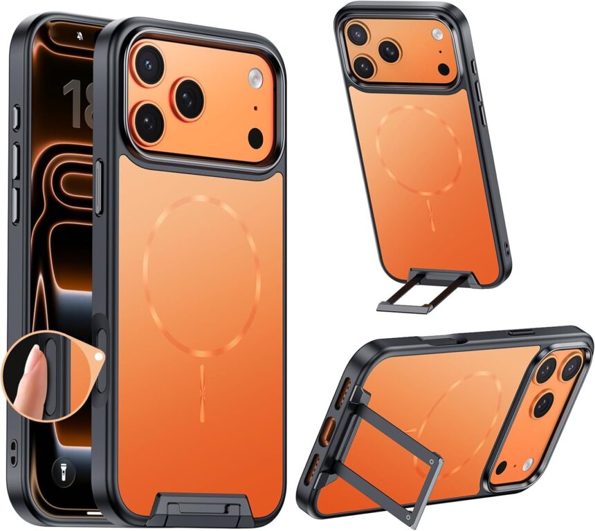 Military Grade Shockproof Protection:This for iPhone 17 Pro Max case with stands 12FT drop height and over 30,000+ drop tests. The reinforced bumper frame and raised camera/ screen edges provide all-around protection against drops, bumps, and scratches, keeping your phone safe in daily use and travel.
