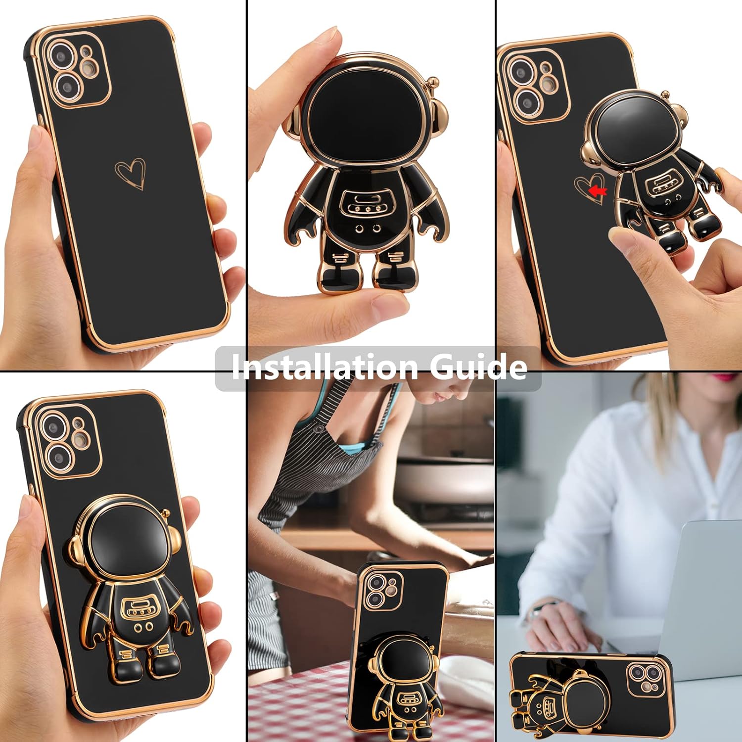Strict Proccess:Perfectly fit for iPhone 12 case,the volume keys and other ports are precisely cut for friendly access.And the astronaut stand is closely adhered to the phone,not easy to fall off.