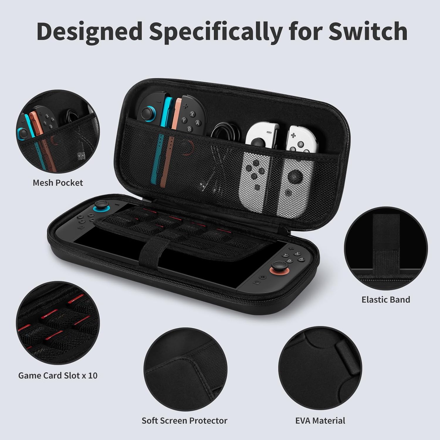 Travel-Friendly Switch Carrying Case Set: With a mesh pocket and 10 game card pockets inside, it has sufficient capacity. Lightweight and portable, our switch carry case accessories is an ideal choice for you to enjoy games during travel
