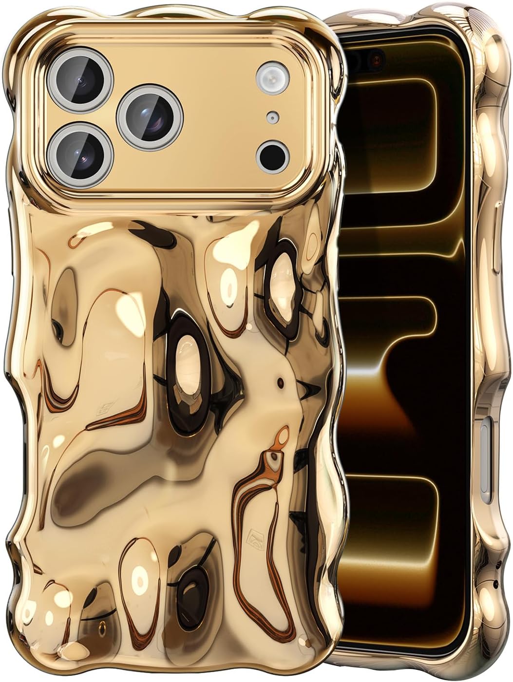 Chunky Phone Case and DO NOT support Wireless Charging: Curly wave frame phone case for iPhone 17 Pro Max girly case is made of soft TPU, which is lightweight and easy to hold; Silver water ripple phone case do not support Wireless Charging