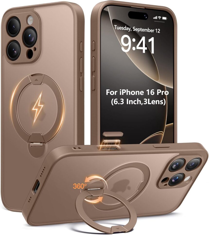 Upgraded 3-in-1 Easily Foldable & Durable Stand: This case integrates magnets, a 360° rotating kickstand, and a ring holder into one seamless design. The kickstand is constructed from aerospace aluminum alloy. The reinforced hinge offers greater durability and drop resistance than regular stands, allowing for smooth rotation between 0° and 120° and making stable phone use effortless—your dependable choice for peace of mind