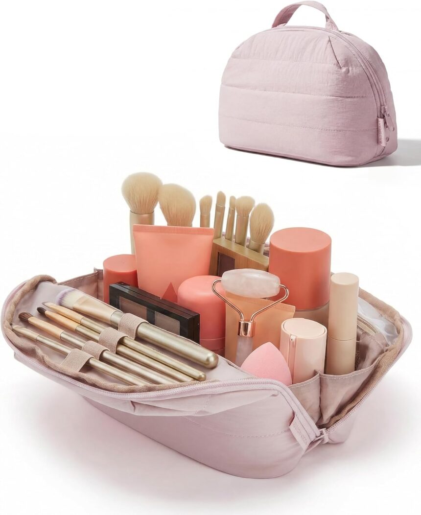 【Lightweight & Travel-Tough】Weighing only 0.44 lbs, this essential toiletry bag slides easily into any carry-on. Built for the road with water-resistant fabric, puffy padding, and a sturdy zipper, it gives your essentials the lightweight portability and serious protection you need in a reliable make up bag