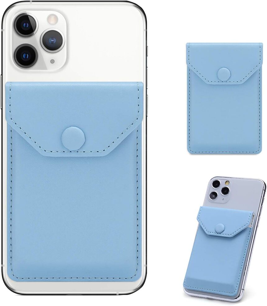 Card holder for back of phones and card case sets made by YUNCE include snap fastener so you never worry about losing your valuable items.