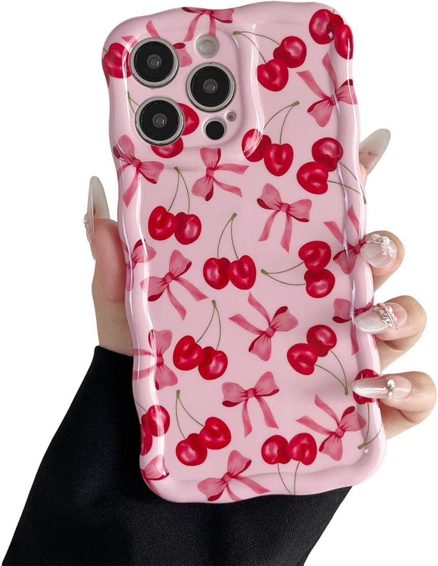 Cute Wave Curly Pink Cherry Bow Phone Case