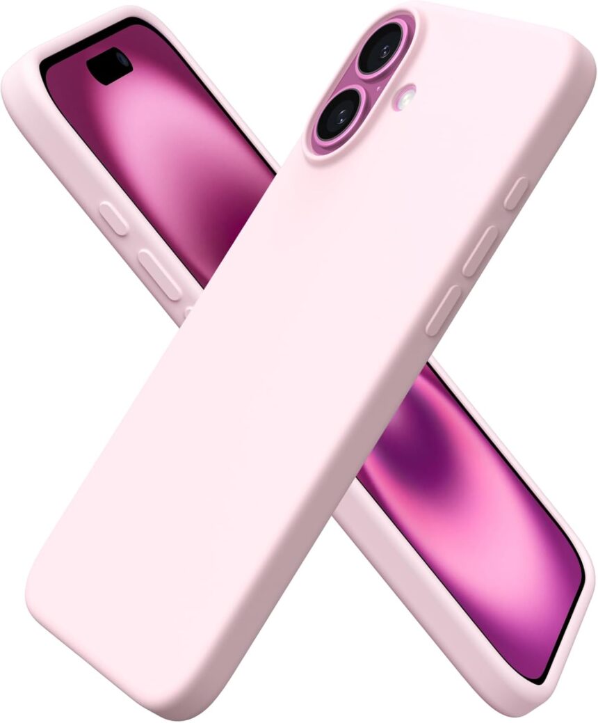 ORNARTO Compatible with iPhone 16 Plus Case 6.7, Slim Liquid Silicone 3 Layers Full Covered Soft Gel Rubber Phone Case Protective Cover 6.7 Inch, Chalk Pink