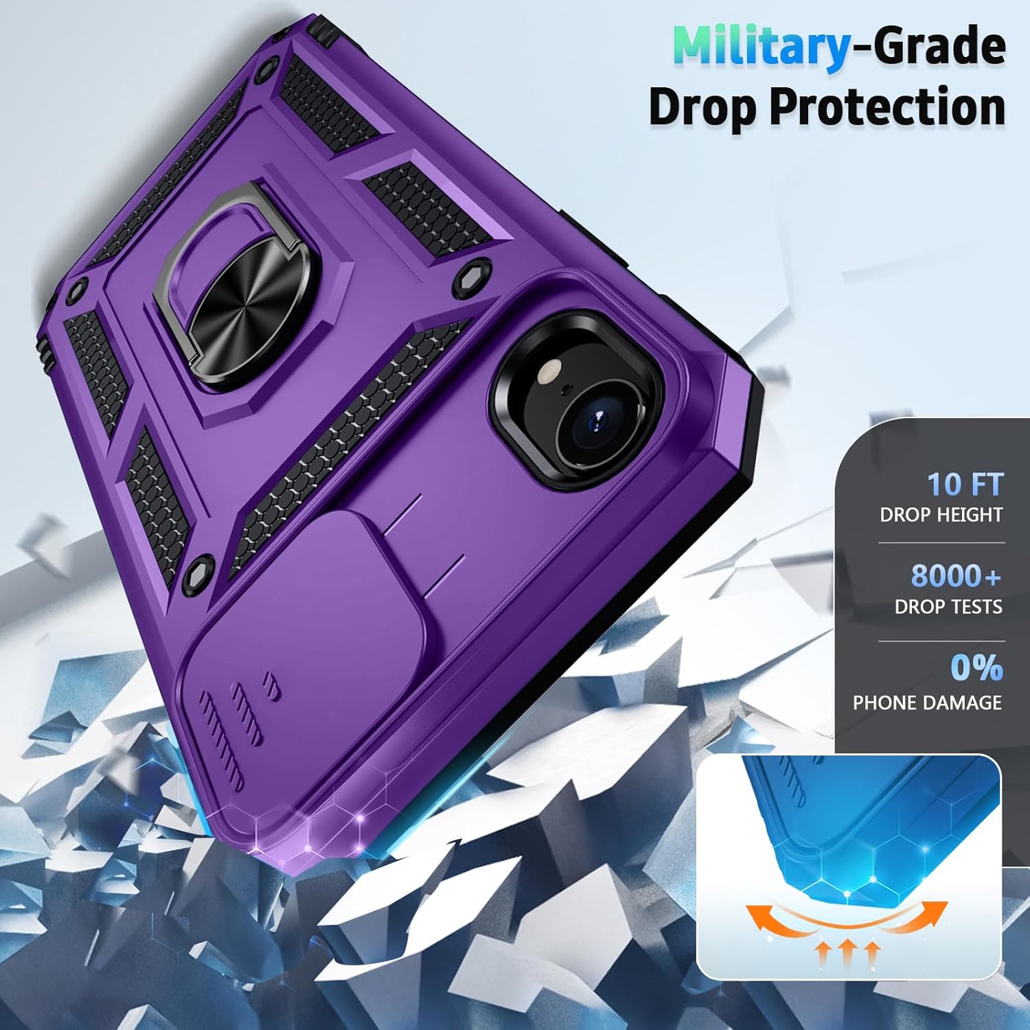 Military-grade Protection: Double-layer TPU+PC structure. The inner TPU layer endows the four corners with shock absorption, protecting the phone against damage in drops and bumps. The outer PC layer protects the phone from abrasions