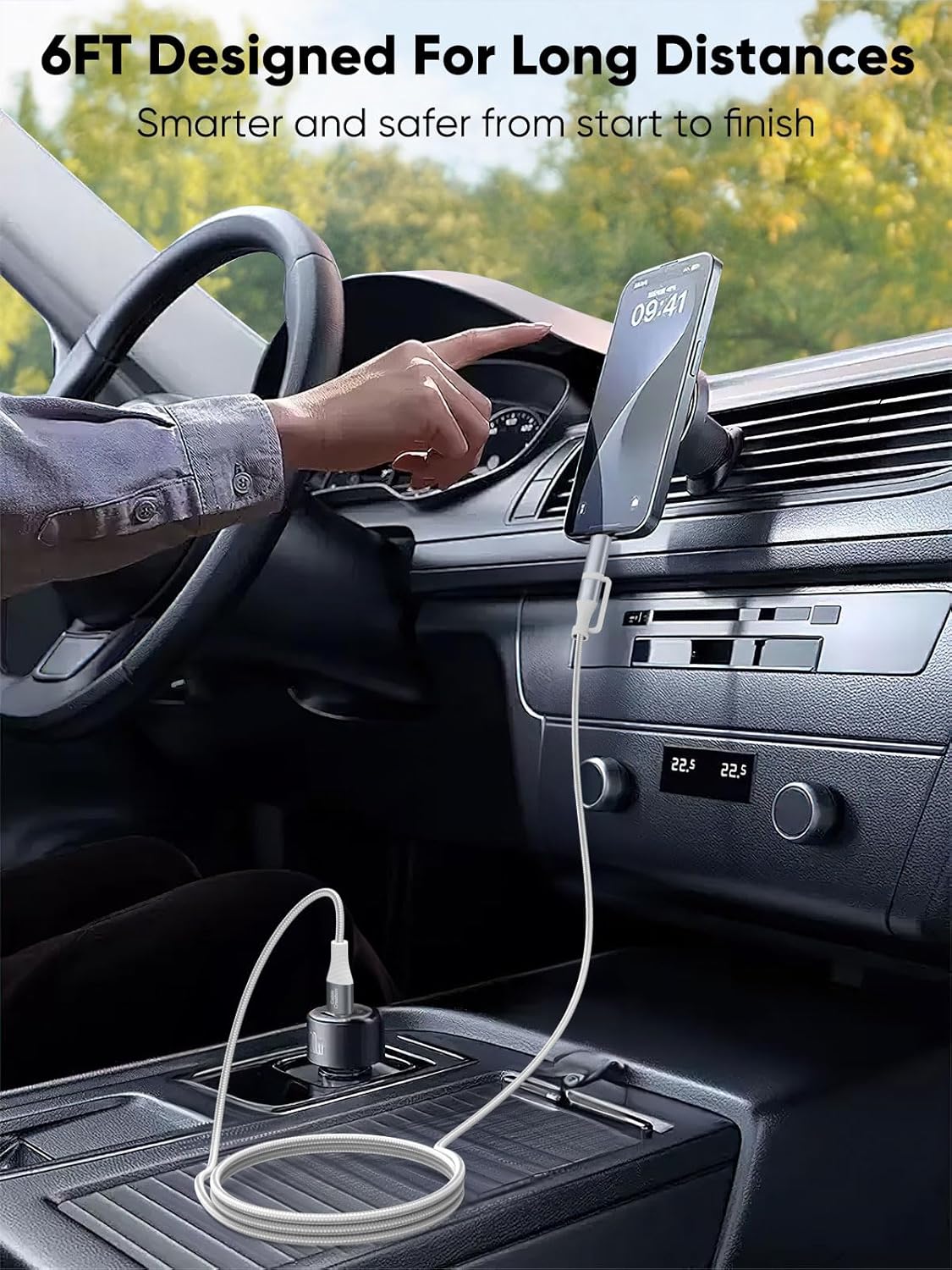 MFi Certified & CarPlay Supported: This 2-in-1 USB-C and Lightning car charging cable is the ultimate solution for in-car charging and connectivity. Built with an MFi-certified chip, it ensures full compatibility with Apple CarPlay and all iOS devices without triggering warning pop-ups. The USB-C port supports the latest iPhone 16 series, enabling seamless connection to your car’s system for Apple CarPlay functionality. With a durable 6FT length, this cable is perfect for charging and syncing your iPhone, iPad, or other iOS devices effortlessly.