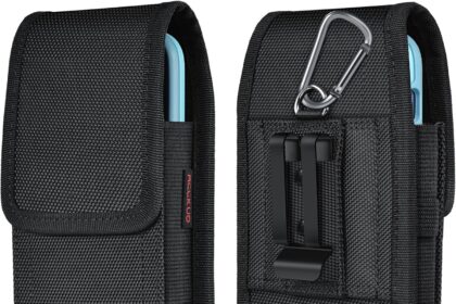 ACCKUO Phone Holster for Belt with Metal Clip and Magnetic Closure Compatible with iPhone 16/15/14/13/12 Pro Max, Galaxy S25/S24/S23/S22 Plus & FE for Everyday Protection, L-Black