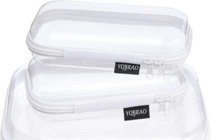 3 Pack Clear Hard Shell Zipper Case – Clear Waterproof Cosmetic Bag with Zipper, Kid’s Toy Storage Organizer Bins, Charging Cables, creative journaling, painting brushes, Threads,Sketch Supplies