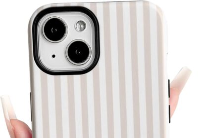 NITITOP Compatible with iPhone 13/14 Case Matte Cute Vertical Stripes for Women Girls Men Boy Striped Pattern Hybrid 2 Layers Back Shockproof Protective Cover – Apricot