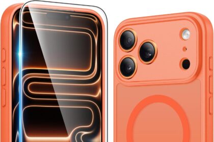 FNTCASE for iPhone 17 Pro Case: Matte Magnetic Phone Cases with Screen Protector Compatible with Magsafe Slim Anti Yellowing Rugged Shockproof Protective Translucent Cell Phone Cover (C-Orange)