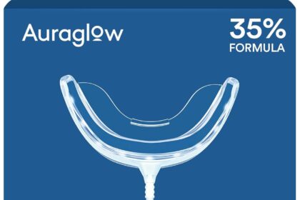 Auraglow Plug-in LED Teeth Whitening Kit – Wired Light Device – 35% Carbamide Peroxide Gel – 12 Treatments – at-Home Tooth Whitening System – Enamel-Safe at-Home Whitening for Coffee & Tea Stains