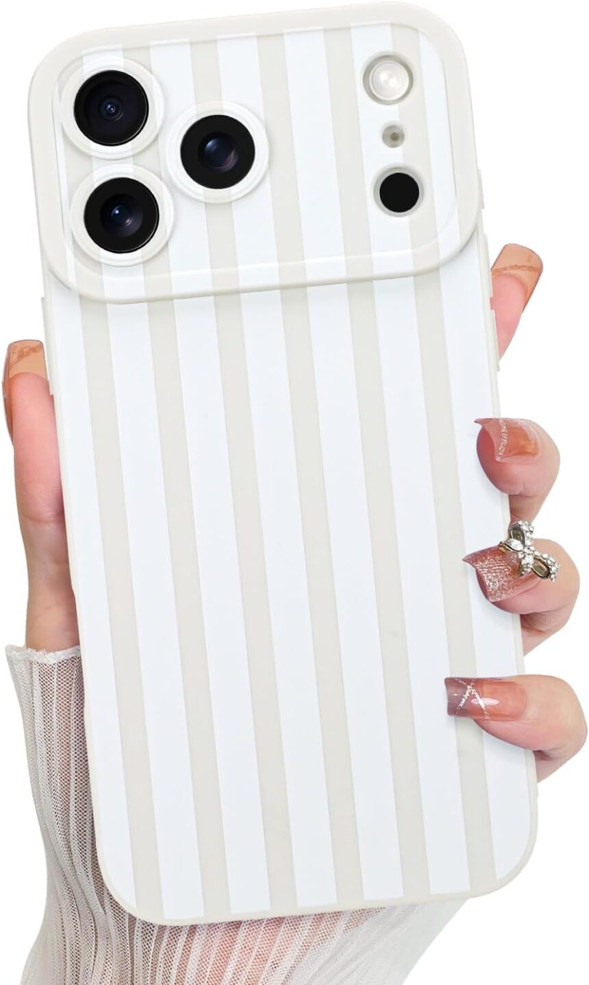 KANGHAR Compatible with iPhone 17 Pro Max Case 2025, Silicone Stripes Cute Pattern, Camera Protection Soft Slim Phone Cover for Girls Women -White