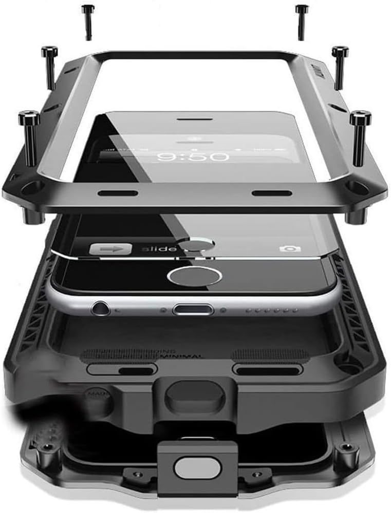 Marrkey for iPhone 16 Metal Case 6.1″,Heavy Duty Shockproof Aluminum Alloy Tough Armour Military Grade Phone Case,360 Full Body Protective Cover with Silicone Built-in Screen Protector – Black