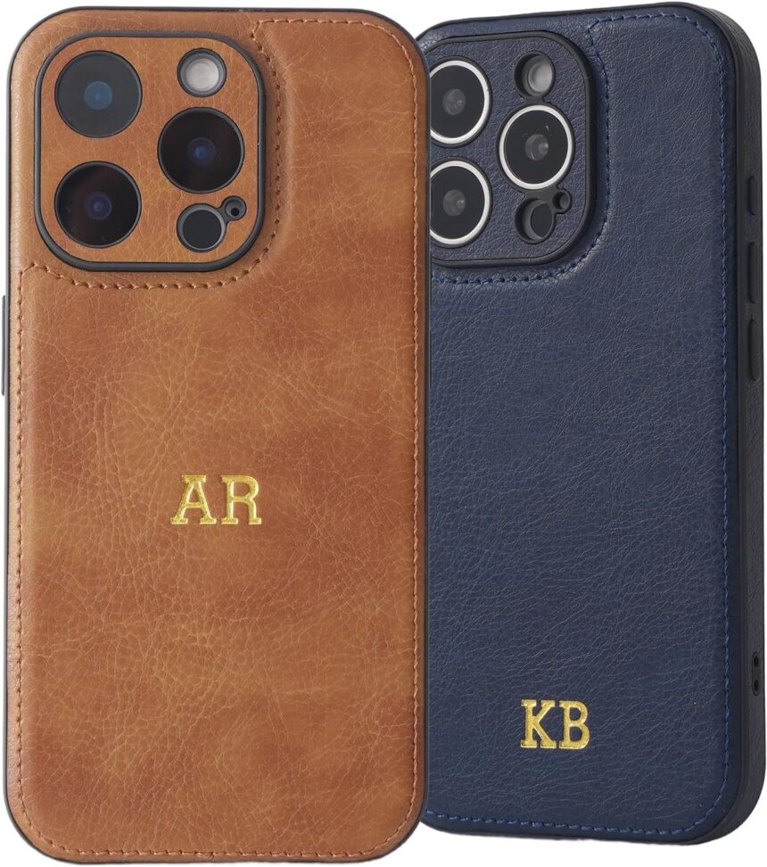 Custom Embossed Case for iPhone 17/16/15/14/13/12/11 Pro Max Plus X XR Air – Personalized Leather Case with Gold Initial,Name,Date,Monogram,Engraving,Gifts Idea