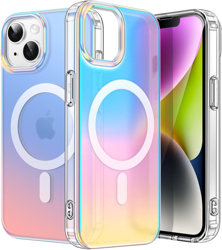 JETech Iridescent Case for iPhone 14 6.1-Inch Compatible with MagSafe, Cute Unique and Aesthetic Design, Colorful Fluorescent Translucent Back Shockproof Phone Cover (Iridescent)