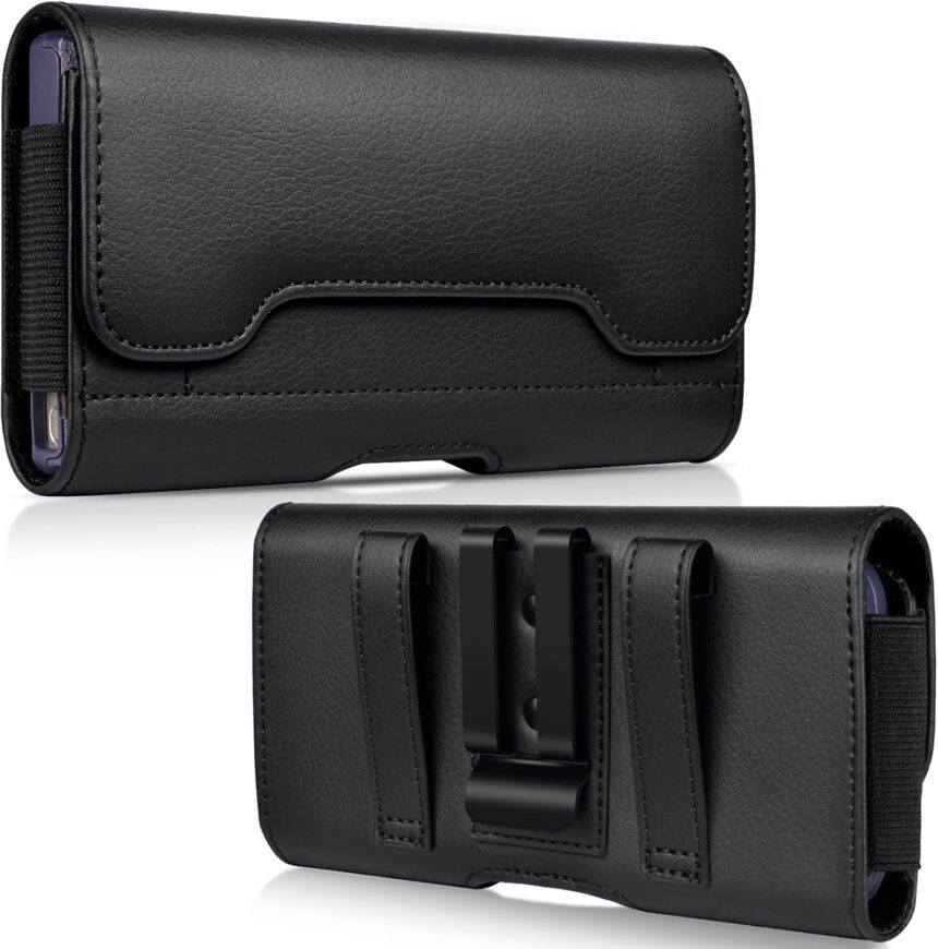 ACCKUO Leather Phone Holster with Strong Metal Belt Clip and Card Holder Compatible with Samsung Galaxy S25/S24/S23/S22/S21/S20 Ultra for Everyday Protection, XL-Black