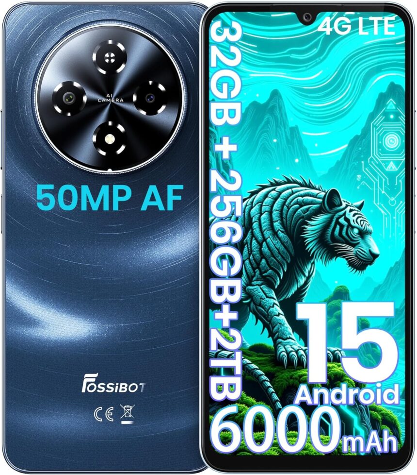 FOSSIBOT S5 Pro Android 15 Cellphone, 32GB+256GB/2TB Phone, 6.88″ HD Smartphone, 6000mAh Battery Smartphones,50MP+8MP Phones,Gemini Al Cell Phone 2026 Black