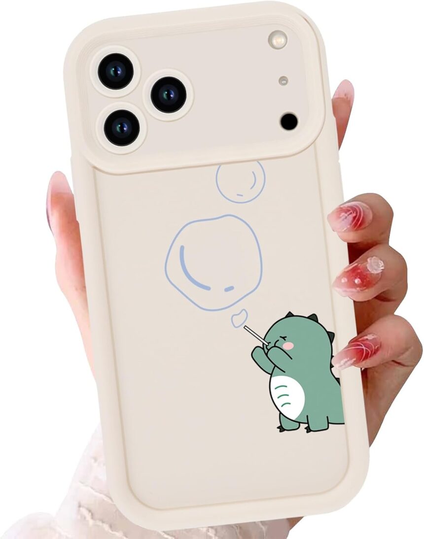 Cute Dinosaur Phone Case for iPhone 17 Pro Max 6.9″,Kawaii Bubble Cartoon Cases Funny Design Pattern Cover for Girls Kids Boys,Soft Shockproof Lens Protection Funda for iPhone 17 Pro Max 6.9″