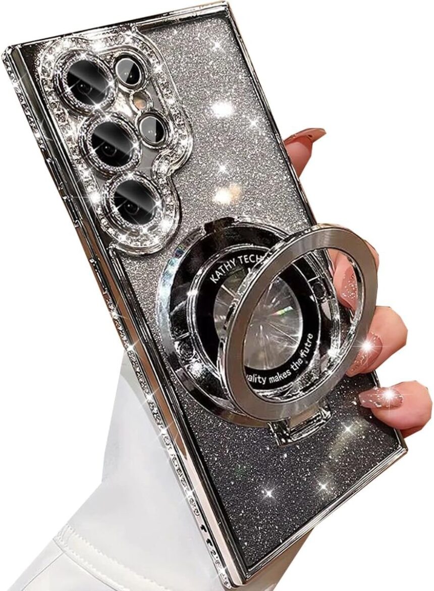 Changjia for Samsung Galaxy S26 Ultra Magnetic Kickstand Glitter Case,[Compatible with Magsafe] Cute Bling Sparkly Diamond Rhinestone with Camera Protector Women Girls Case for Galaxy S26 Ultra,Silver