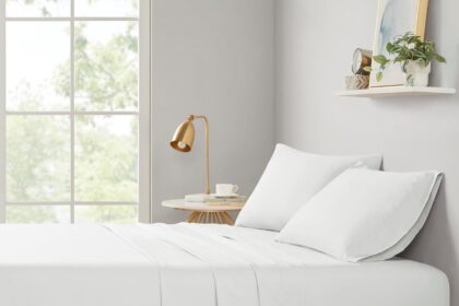 Intelligent Design Microfiber Bed Sheet Set Wrinkle Resistant, Soft Sheets with 12″ Pocket, Modern, All Season, and Cozy, Matching Pillow Case, Twin, White, 3 Piece