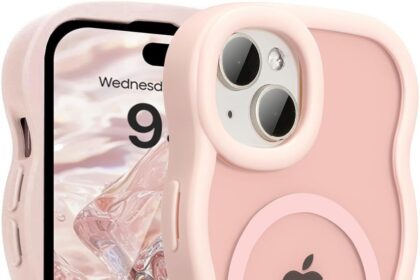 UEEBAI Magnetic for iPhone 14 Case & iPhone 13 Case, Compatible with MagSafe, 2025 Transparent Wave Frame Design Soft Edge Cover Cute Clear Matte Shockproof Protective Phone Cover, Pink