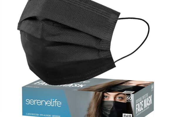 SereneLife 50 Count Disposable Face Masks | Breathable 3-Ply Layers | Made from Non-Woven Fabric | Comfortable Earloops | Daily Use & Personal Care | Easy to Use & Disposable | For Adults (Black)