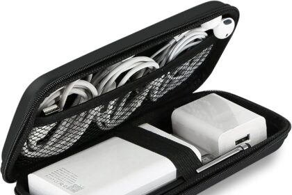 iMangoo Travel Essential Electronics Organizer Pouch Charger Case, Shockproof Dual Zipper Power Bank Cables Tech Accessories Purse, Men & Women Travel Must Have Storage Bag, 6.5×3.2×1 inch Black