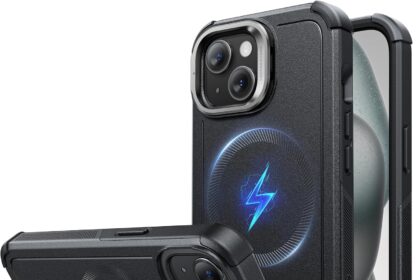 ESR for iPhone 15 Case with Stand, 23 ft Military-Grade Drop Protection Heavy Duty Magnetic Phone Case, Compatible with MagSafe Accessories, Cyber Series, Black
