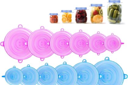 Silicone Stretch Lids, 6 Pack Silicone Lids, 6 Sizes Silicone Bowl Covers Reusable for Cups, Bowls and Dish, Flexible, Round and Rectangle Fit