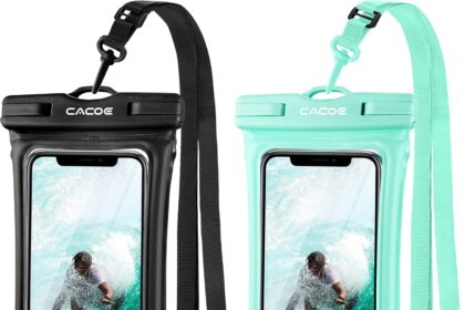 CACOE [Floatable] Floating Universal IPX8 Waterproof Phone case 2 Pack-Up to 7.0″,Adjustable Lanyard Phone Pouch,Cellphone Dry Bags for Vacation Beach Pool Kayak Cruise Travel Essentials(Black+Green)