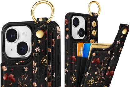 Petitian for iPhone 14/13 Case with Wallet – Women Girls Cute Girly Aesthetic Unique Design Leather Credit Card Holder Cardholder Stand Wristband for iPhone 14/13, Grow Flower