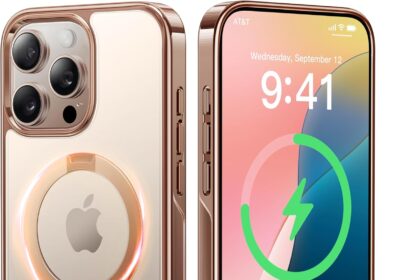 CASEKOO 360 Spin Magnetic Stand for iPhone 16 Pro Max Case Desert Titanium [Compatible with Magsafe][16FT Military Protection] Slim Hand-Polished Frame Titanium Alloy Sturdy Stand 6.9″, Rose Gold