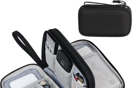 FYY Electronic Organizer, Travel Cable Organizer Bag Pouch Electronic Accessories Carry Case Portable Waterproof Double Layers Storage Bag for Cable, Cord, Charger, Phone, Earphone, Medium, Black