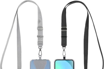 CACOE Phone Lanyard 2 Pack-2× Adjustable Neck Strap,2× Phone Patches,Universal Cell Phone Multifuctional Patch Lanyards Compatible with Most Smartphones(Black+Gray)